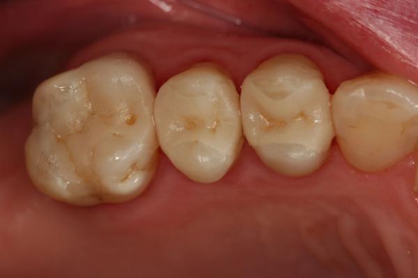 Stained and glazed CEREC® quadrant. #3, #4 are full coverage CEREC® crowns done in 90 minutes complete. |